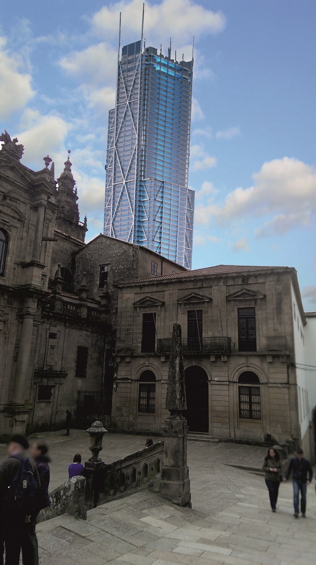 Aproveitando que o campanario estaba cuberto para realizar unhas supostas obras de rehabilitación a diócese compostelá comezou a substituír as centenarias pedras polo aceiro e o cristal que conformarán o novo hotel de cinco estrelas que ocupará o seu lugar.