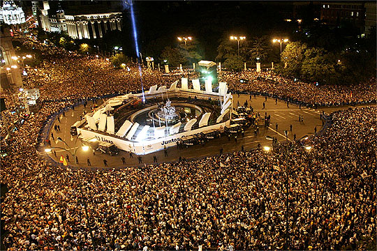 A masa, que festexou durante toda a noite a vitoria de Sánchez na praza de Cibeles, aseguraba entre Cruzcampos que os seguidores de Susana Díaz deixaron tiradas, que o PSOÉ sería quen de arrebatarlle o goberno ao PP nun prazo de 6meses.