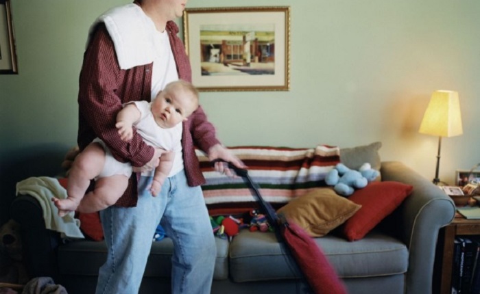 Por primeira vez na historia un home é capaz de realizar dúas cousas á vez forzado pola ausencia da súa compañeira que estaba a participar na folga feminista do 8 de marzo.