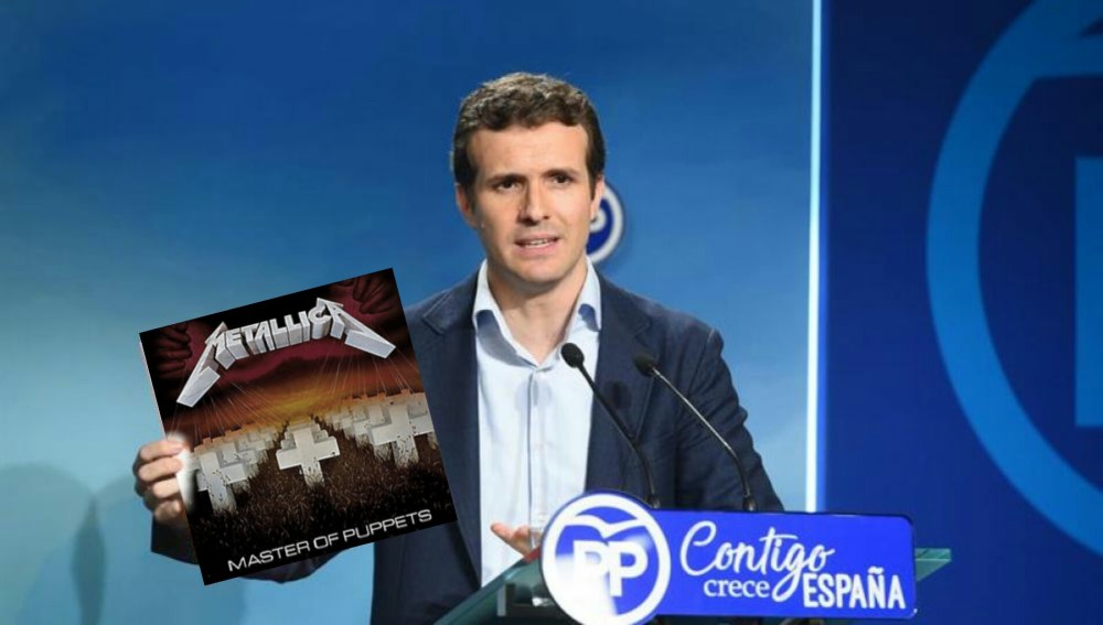 Con dez minutos de retraso sobre a hora prevista, o líder dos populares chegaba sorrinte á súa cita cos medios e ante todo esa expectación e revuelo xerado, Casado alzaba o se “máster”, un vinilo orixinal de Master of puppets todavía sen abrir.